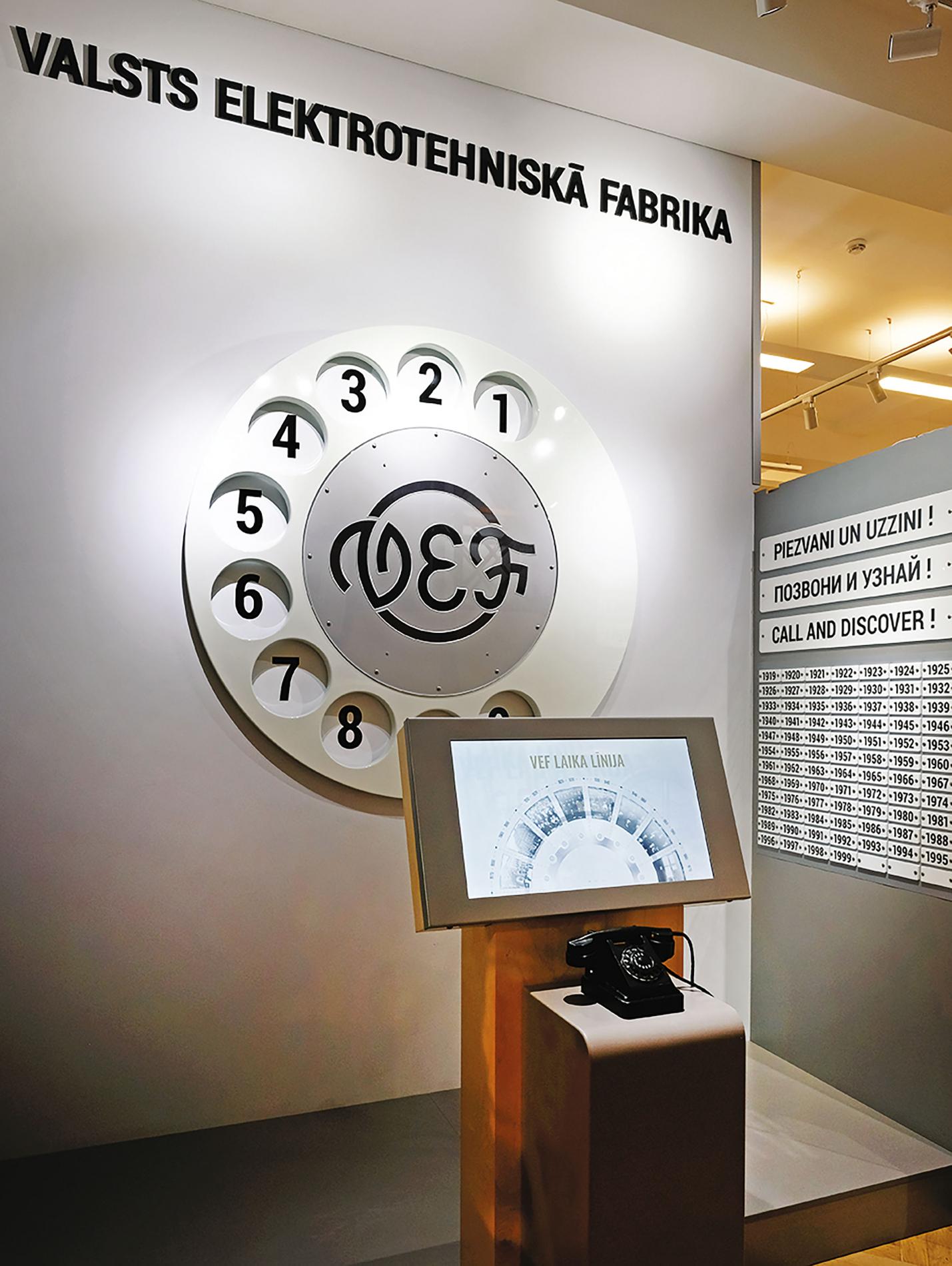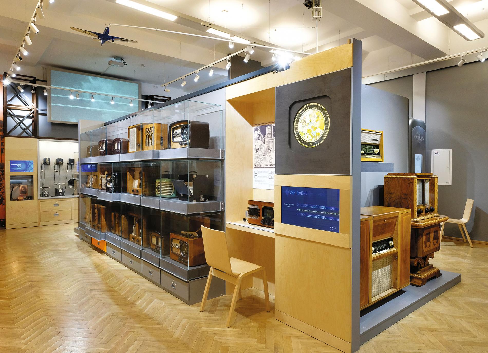 VEF vēsture ir neticami bagāta, tajā ietilpst gan Minox slavas dziesma, gan lidmašīnu būve, gan pirmie tranzistori, gan VEF basketbola meistarkomanda u.t.jpr., turklāt muzeja stāsts risināts caur personībām un uz valsts politisko notikumu fona. Līdz ar to ko rādīt ir daudz. Gan satura izstrāde, gan dizaina koncepta izveidošana miniatūrā divu cilvēku komandā bijis izaicinājums un iespaidīgs darbs. Vizuālais tēls, kas apvieno visu ekspozīciju, vairāk trāpa 30. gados - gaišs saplāksnis un metāls. Modīgā finiera ražošana tajā laikā bija viena no nozīmīgām Latvijas tautsaimniecības nozarēm, un, ja arī neizdevās tāds saplākšņa mēbeļu ražošanas uzrāviens kā igauņiem, tad mūsu valsts starptautiskajā tirgū šikoja ar radioaparātiem saplākšņa apdarē. Izvelkamās vitrīnas ekspozīcijā ļauj katru no tiem apbrīnot individuāli.