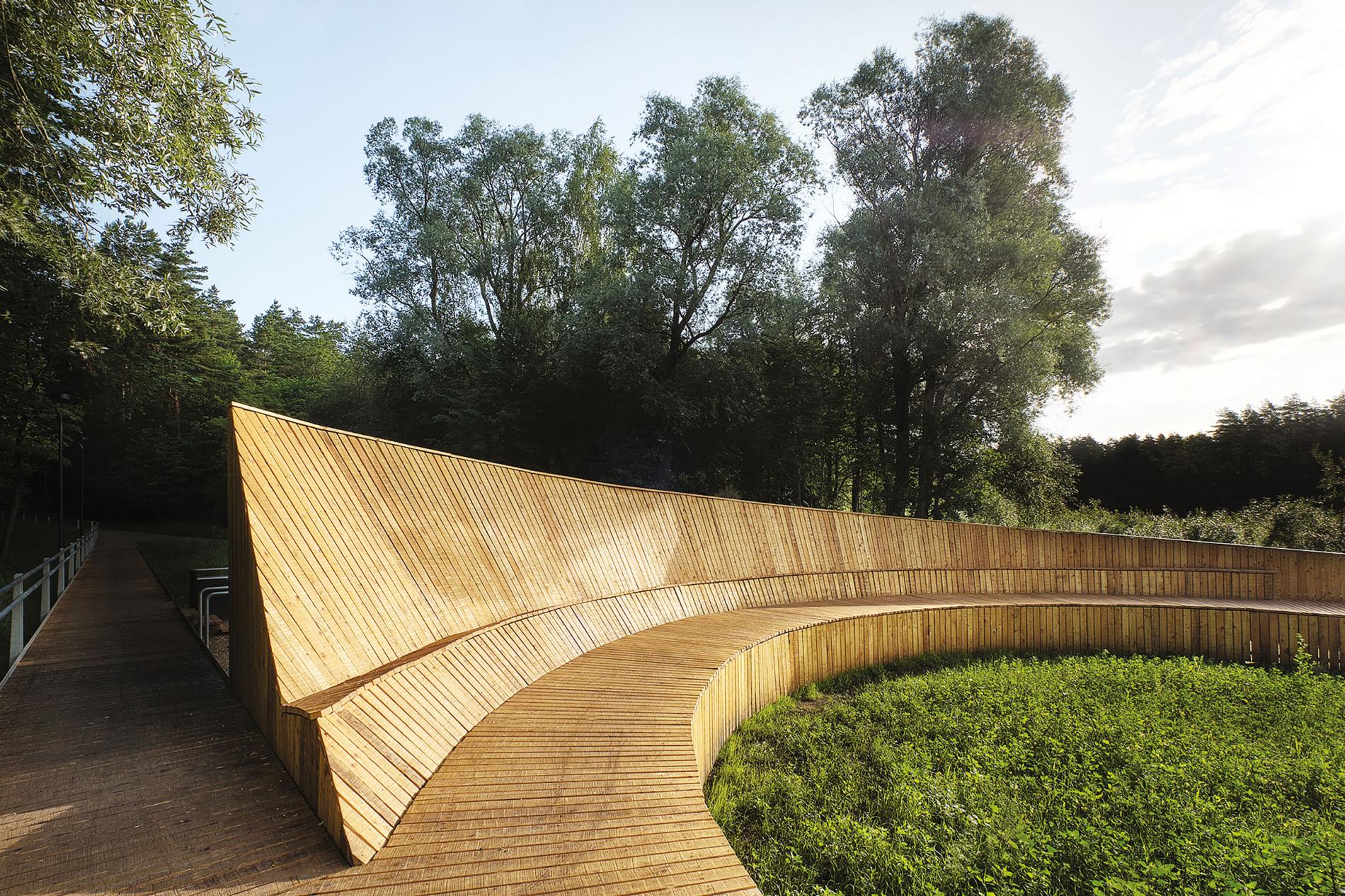 Pēdējos gados globālajā arhitektūras telpā aizvien pamanāmākas kļūst apļveida struktūras, kas pieļauj ainavas pilnasinīgu 360 grādu pieredzi. Šogad ainavu arhitektūras entuziastu uzmanību piesaistīja Eiropā pirmais veloceliņš, kas savu 700 metru garo loku 100 metru diametrā izvij cauri koku biezoknim - to pusstumbra augstumā ar pakāpenisku slīpuma maiņu (arhitektu birojs «Burolandschap», 2019). Savukārt apļveida struktūra 334 grādu interpretācijā realizēta 7,6 metrus augstas pastaigu takas formā virs Dienvidmorāvijas reģiona vīna dārziem («Keeo4design», 2018). Nesen arhitektūras entuziastu uzmanības lokā nonāca 45 metrus augsts spirālveida novērošanas tornis, kas pacēlās virs koku galotnēm stundas brauciena attālumā no Kopenhāgenas («EFFEKT», 2017), bet Dānijas pilsētas Orhūsas gleznainās piekrastes ainavā pirms neilga laika tika realizēta ievērojama skulptūra uz ūdens - «Bezgalīgais tilts» («Gjøde&Povlsgaard Arkitekter», 2015).