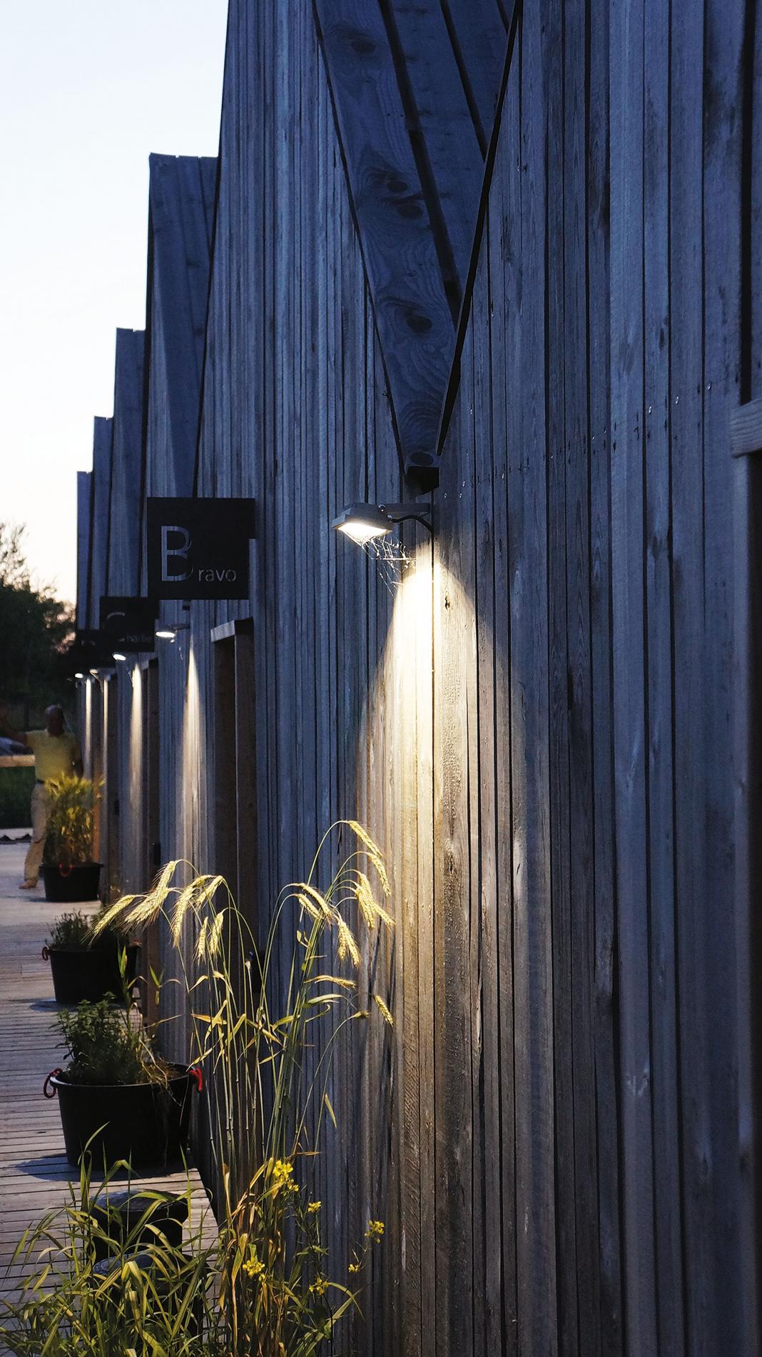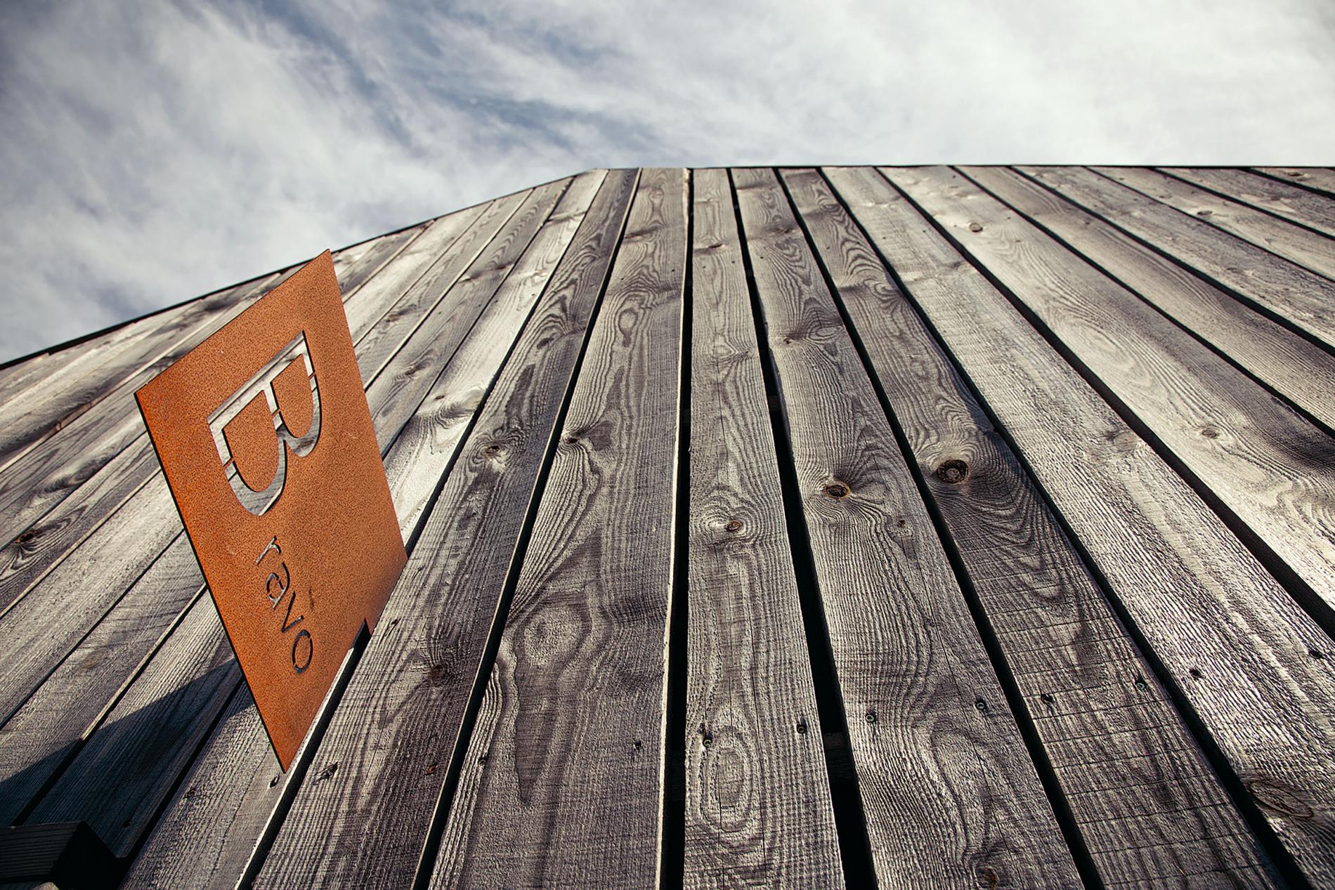 Namiņu nosaukumi - Alpha, Bruno, Charlie, Delta, Echo un Foxtrot - aizgūti no starptautiskā fonētiskā alfabēta, ko izmanto arī jūras navigācijā. Projekta gaitā piesaistīts grafiskais dizainers Gusts Rutkis, kurš izstrādājis peldmājas logotipu. Gusta veidotās ikonas peldmājā atrodamas arī uz interjera priekšmetiem un stiklotās fasādes. «Grafiskais risinājums palīdz ēkas arhitektūru savilkt kopā ar mārketinga daļu,» komentē Līga.